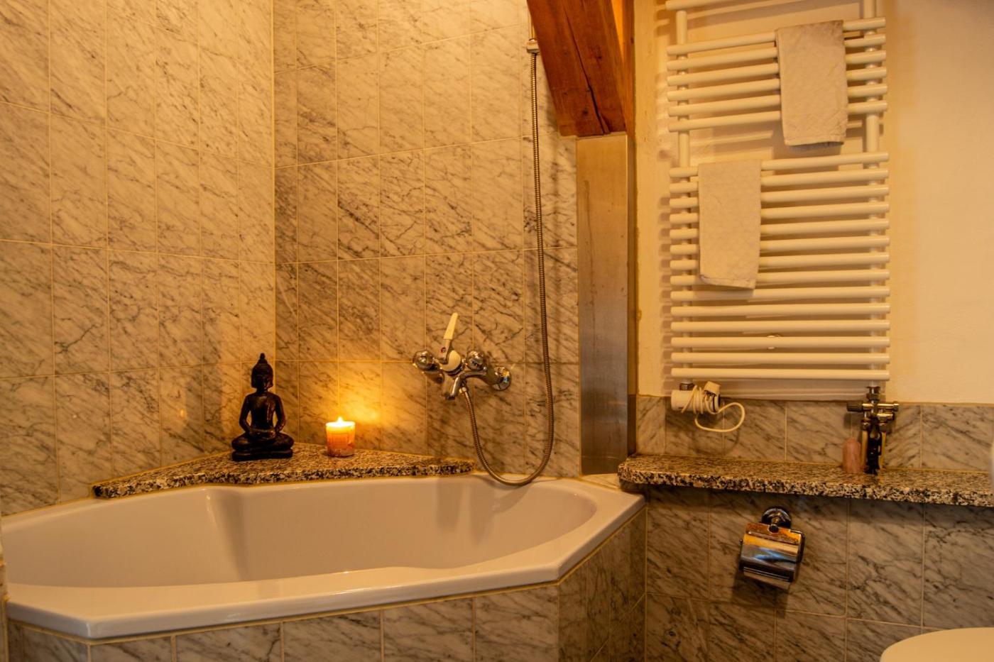 Two-Bedroom Apartment. Featuring a private entrance, this spacious apartment also comprises 1 living room, 2 separate bedrooms and 1 bathroom with a bath. In the well-fitted kitchen, guests will find a stovetop, a refrigerator, kitchenware and a tea and coffee maker. The apartment provides a washing machine, a seating area, a dining area as well as a balcony with mountain views. The unit offers 4 beds.