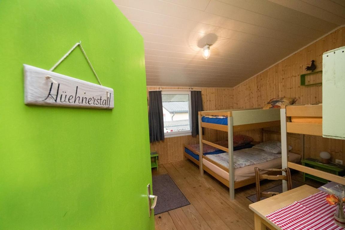Family Room with Straw Bed and Shared Bathroom. In this family room, guests sleep on straw in a barn (sleeping surface is 320 cm x 300 cm large). Pillows, woolen blankets and sheets are provided, but guests need to bring their own sleeping bags. Bathroom facilities are shared. Please note that pets are not allowed in the barn and children can only sleep in the barn on request. Please note that no heating is available in this room type. ;