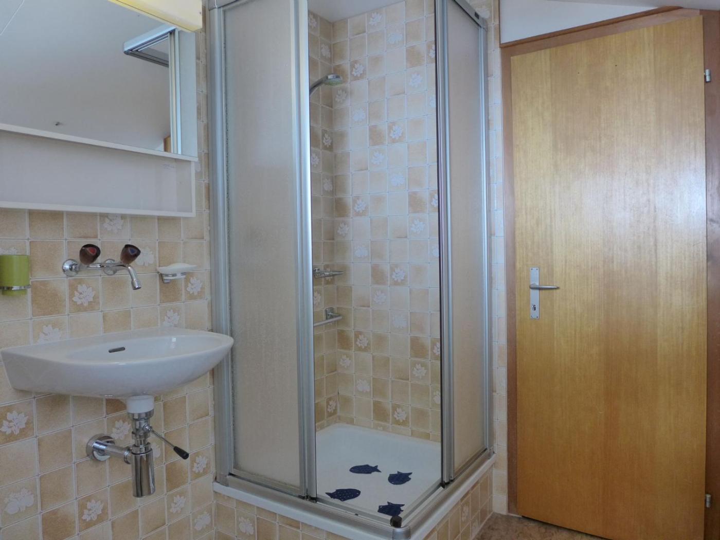 Apartment. "Chalet Seeberg", 3-room apartment 44 m2, on the upper floor, south-east facing position, partly with sloping ceilings, cosy furnishings: livingdining room with radio and DVD. Exit to the balcony. Livingsleeping room with 2 beds, satellite-TV and video. 1 room with sloping ceilings with 2 beds. Kitchen (3 hotplates, oven, micro wave, electric coffee machine). ShowerWC. Heating. Small balcony 6 m2, west facing position, patio. Deck chairs (2). Nice view of the mountains, the countryside and the forest. Reserved parking. 2 pets dogs allowed.