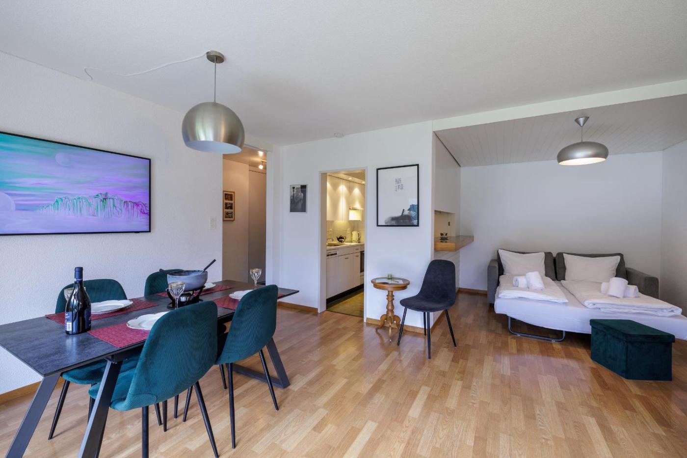 The apartment with a balcony and mountain views has 1 bedroom, a living room, a TV, an equipped kitchen with a dishwasher and an oven, and 1 bathroom with a bath. Towels and bed linen are available in the apartment. The property has an outdoor dining area.